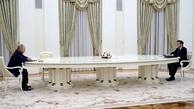 ቅድሚ ሕጂ’ውን ብተመሳሳሊ ናብ ሩስያ ምብጻሕ ዘካየደ ቀዳማይ ሚኒስተር ሃንጋሪ ቪክቶር ኦርባን ከምኡ’ውን ፕረዚደንት ኢራን ኢብራሂም ራይሲ ብተመሳሳሊ ምስ ፕረዚደንት ቭላዳሚር ፑቲን ኢድ ንኢድ ከይተጨባበጡ ኣብ ሞብጎኦም 4 ሜትሮ ጣውላ ገይሮም’ዮም ዘትዮም።