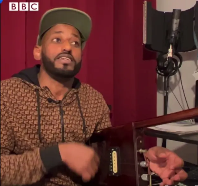 ኣብ ገዛኡ፡ ዝለማመደላን ሙዚቃታቱ ዘወሃህደላን ንእሽቶ ስትድዮ ብምግባር፡ ንዘለዎ ዓቕሚ ንምምዕባል ከይሰልከየ ይሰርሕ ኣሎ።