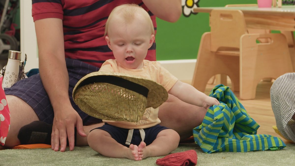 The Baby Club’s Nigel Clarke encourages parents and carers to explore a hat with babies.