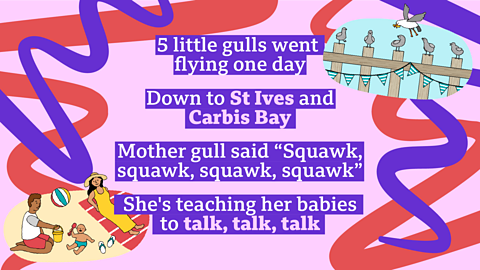 This rhyme was written especially for little ones in Cornwall, make sure you look out for the 5 little gulls next time you're down at the beach!