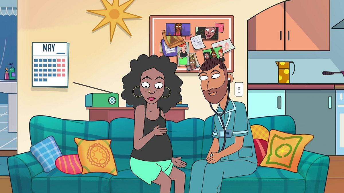 Linda listens to her baby's heartbeat and talks to her friends about whether babies in bumps can react to temperature or sound.