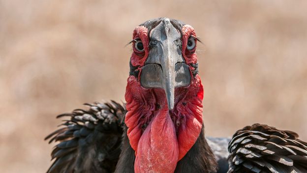 Southern ground hornbills, which live in family groups, can be found on open savannah and grassland all the way from South Africa to Uganda and the Democratic Republic of Congo. But as the species' natural territory has shrunk due to development, farming and overgrazing, its population has plummeted – to such an extent that the International Union for Conservation of Nature now classifies these apex predators as vulnerable in sub-Saharan Africa and endangered in South Africa and Namibia.