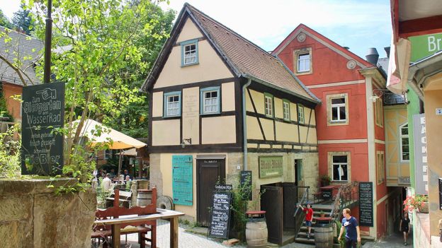 The half-timbered houses, the isolated location deep in eastern Germany's forested hinterlands, the eerie rock pinnacles bounding the town on one side and the tempestuous Elbe River on the other – throw in an evil witch and Schmilka would be straight out of a 19th-Century Brothers Grimm fairy tale. Or, at least, of that age: the buildings go back around two centuries, the food and beer are prepared using techniques just as old, and I had to run up and down the town's one street (cobblestoned, of course) to find a wi-fi signal. Talk about a time warp.