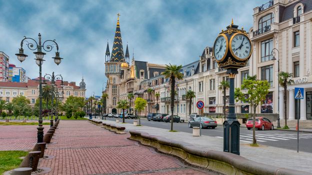 The capital of Georgia's humid, south-western Adjaria region, Batumi is a subtropical city of lush greenery and eclectic architecture. The exuberant fin-de-siecle confections of Europe Square sit cheek by jowl with the Turkish-style openwork balconies, Art Nouveau masterpieces and cobbled streets of Batumi's historic heart, while the green space of the 7km seaside promenade is overshadowed by futuristic skyscrapers along Rustaveli Avenue.