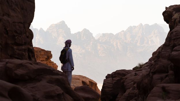 My Bedouin guide Abdallah led the way up and into the crags of Jebel Umm Ishrin (1,753m), the sheer, eastern wall of Jordan's most spectacular valley: Wadi Rum. Though it's considered one of the world's most breathtaking desert landscapes today, few outsiders had ever heard of Wadi Rum in 1917 when British archaeologist and writer TE Lawrence travelled through, describing this eastern wall as "one massive rampart of redness".