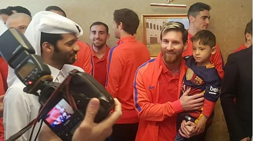 Özel bir karşılaşma için Katar'a giden Messi'nin kucağında kameraların karşısına çıkan Murtaza bu kez Barcelona forması giydi.
