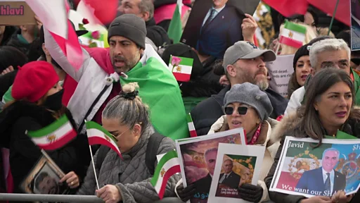 Çok sayıda İranlı, sürgündeki eski İran şahının oğlu Rıza Pehlevi'nin çağrısıyla gösteri yapıyor.