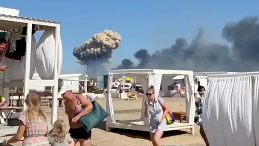 Moskova'nın 2014'te ilhak ettiği Kırım, Rus turistlerin uğrak noktası ve bölgeden paylaşılan görüntüler arka planda yükselen dumanlar nedeniyle sahilden kaçan turistleri gösteriyor.