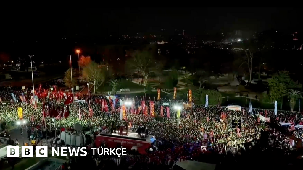 Tutuklanarak görevden alınan İstanbul Büyükşehir Belediye Başkanı ve CHP'nin cumhurbaşkanı adayı Ekrem İmamoğlu'nun gözaltına alınmasının birinci yılı nedeniyle İstanbul Saraçhane'de geniş katılımlı bir miting düzenlendi.