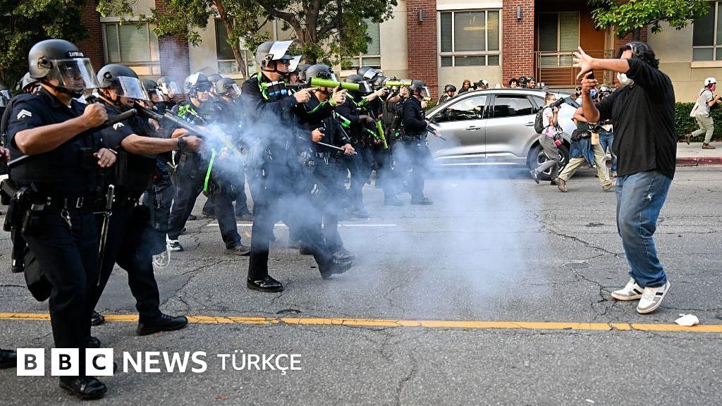 Video altyazısı, Polis 9 Haziran Pazartesi Los Angeles'taki protestoculara karşı plastik mermi kullandı.