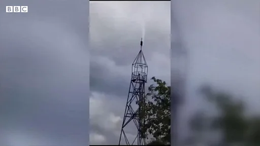 BBC tarafından doğrulanan video görüntüleri, Rusya'nın Kuzhenkino kentinde düşmekte olan bir uçağı gösteriyor.