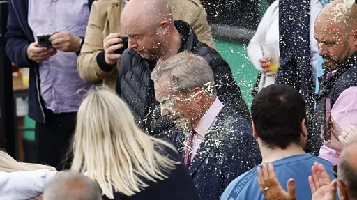 Clacton'daki seçim kampanyası sırasında Farage'a bir kadın içecek fırlattı.