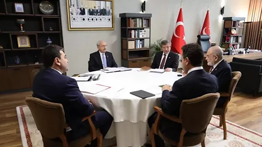 CHP Genel Başkanı Kemal Kılıçdaroğlu, İYİ Parti Genel Başkanı Meral Akşener, DEVA Partisi Genel Başkanı Ali Babacan, Gelecek Partisi Genel Başkanı Ahmet Davutoğlu ve Demokrat Parti Genel Başkanı Gültekin Uysal, Saadet Partisi Genel Başkanı Temel Karamollaloğlu’nun ev sahipliğinde, cumhurbaşkanı adayını belirlemek için bir araya geldi.