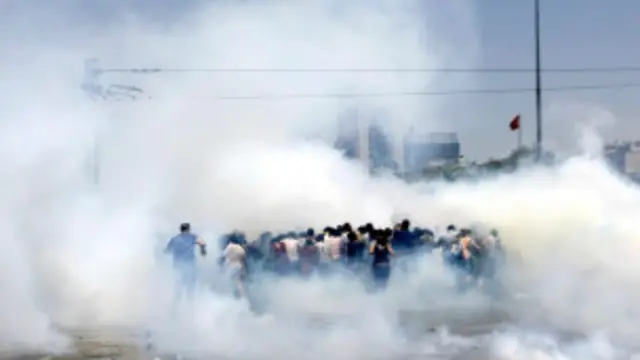 "Türkiye'deki haber kanalları, hükûmetin baskısı nedeniyle gösterilere ilişkin nerdeyse hiçbir haber vermiyor. İstanbul Büyükşehir Belediyesi, kent merkezindeki kameraları kapattı. Taksim ve çevresinde cep telefonları ve internet kullanımı sekteye uğruyor."