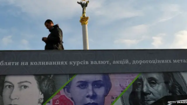 Ukraynalı yetkililer ulusal para biriminin Kasım ayından bu yana %10 devalüe olmasını, kitlesel gösteriler ve gelişmekte olan ülkelerdeki ekonomik yavaşlama ile açıklıyorlar.
