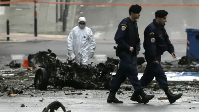 Reuters haber ajansı, patlama nedeniyle ölen ya da yaralanan bulunmadığını belirtti. Merkez Bankası binasının camları patlamanın şiddetiyle kırıldı. Polis saldırıyı aşırı solcu ya da anarşist grupların gerçekleştirdiğini düşünüyor.