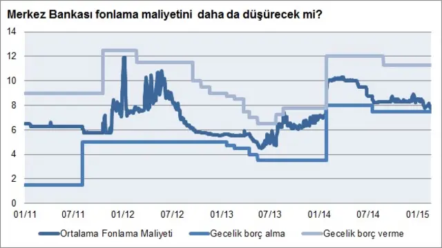 Piyasa uzmanları hem politika faizi fonlaması hem de gecelik piyasa fonlamasının ortalamasını gösteren ortalama fonlama maliyetinin faiz koridorunun alt bandına dayandığını belirtiyor ve daha fazla faiz indirimi için koridorun alt ve üst bandıyla da oynanabileceğini ifade ediyor.