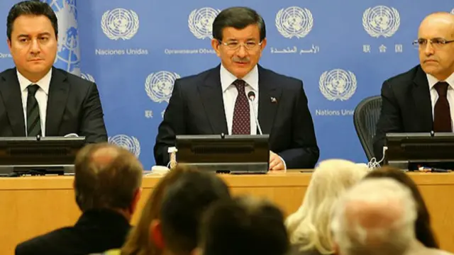 ABD'deki temasları kapsamında Birleşmiş Milletler Genel Sekreteri Ban Ki-mun ile görüştükten sonra Ekonomi ve Maliye bakanları Ali Babacan ve Mehmet Şimşek ile beraber kameraların karşısına geçen Davutoğlu, doların yükselişi "Sadece Türkiye'deki tartışmalara bağlanamaz. Dolardaki yükselişle ilgili tüm kurumlarımız gerekli tedbirleri almaktadır" dedi.