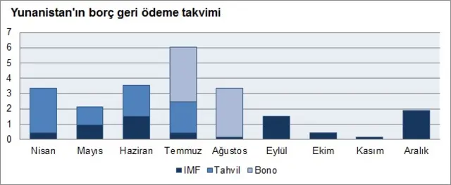 Yunanistan'ın önünde bir de yoğun borç geri ödeme takvimi var. Perşembe günü IMF'ye 448 milyon euroluk bir ödeme yapılması gerek.