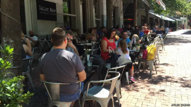 Maaşlarını çekenlerden bir kısmı çevredeki kafelere oturuyor. Yunanistan'ın günlük yaşamında kahvenin yeri büyük.