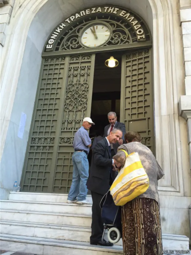 Yunanistan Maliye Bakanlığı, emeklilere maaş ödemesi yapabilmek için 1000 banka şubesini açtı. Nakit ihtiyacı içindeki emekliler sabah erken saatlerden itibaren kuyruklardaydı.