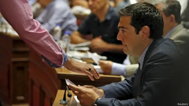 Yunanistan Parlamentosu'ndaki oylama öncesi ise Tsipras önce lideri olduğu Radikal Sol Koalisyon'un (Syriza) meclis grubunu topladı.