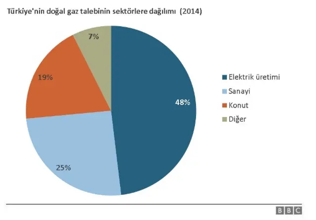 Türkiye’de doğalgaz talebinin yarısı elektrik üretimi için, dörtte biri sanayi, dörtte biri de konut ve ticarethanelerde kullanılıyor.