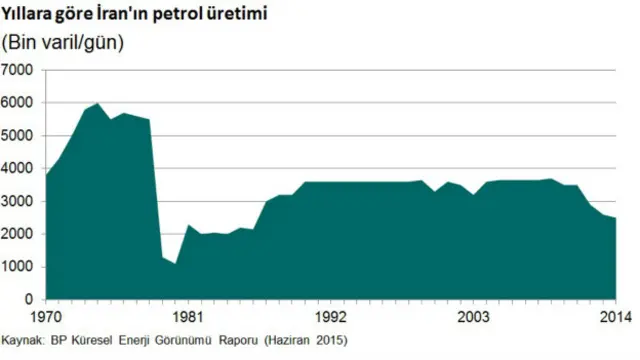 Tahran'ın petrol üretimi de 2014'te günlük 3,38 milyon varil seviyesindeydi.