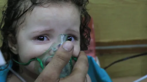 Görüntülerde çocuk ve kadın yaralılara oksijen maskeleri takıldığı görülüyor.