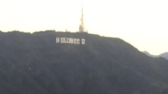 Amerikan sinemasının yüksek bütçeli filmlerinin merkezi olan Hollywood'un sembolik levhası, 'kutsal ot' anlamına gelen 'Hollyweed' olarak değiştirildi.
