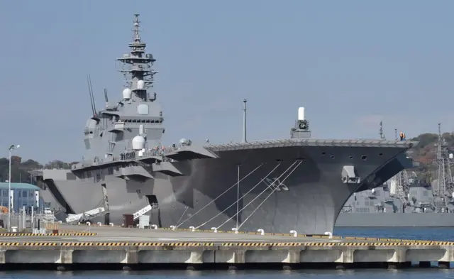 Tokyo'daki BBC muhabiri Rupert Wingfield-Hayes, Izumo'nun Japon donanmasının gururu olduğunu ve ülkenin diğer gemilerinden açık ara daha büyük olduğunu söylüyor.