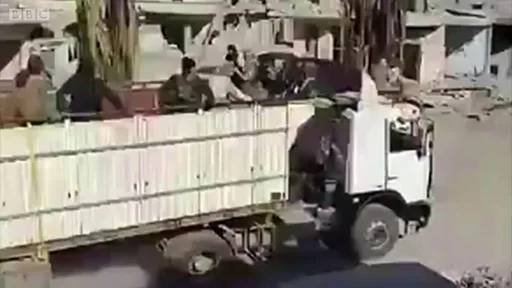 BBC'nin ele geçirdiği gizli görüntü kayıtlarında kamyonlarda silahlı kişiler olduğu da görüldü.