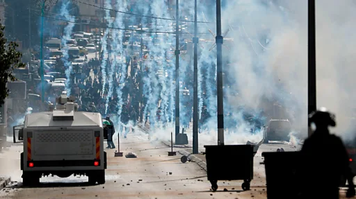 Batı Şeria'daki Beytüllahim'den gelen görüntülerde yüzlerce gösterici ana cadde üzerinde İsrail askerleriyle karşı karşıya görülüyor.