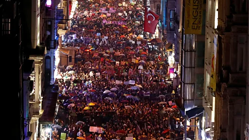 İstanbul'da, İstiklal Caddesi'nde binlerce kadın "İtaat etmiyoruz, susmuyoruz, korkmuyoruz" ve "Kadınlar birlikte güçlü" sloganları attı.