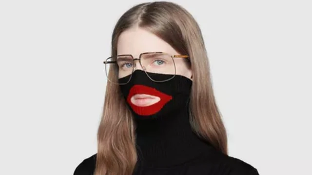 Gucci'nin son tasarımı, yüzün alt kısmını kapayan ve ağız kısmı açık olan siyah kazak-balaklava (kar maskesi) karışımıydı.