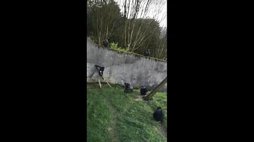 Cumartesi günü ziyaretçiler tarafından çekilen videoda bir şempanze, duvara dayalı bir dala basarak yukarı çıkıyor. Duvarın üzerinde başka bir şempanze daha görülüyor.