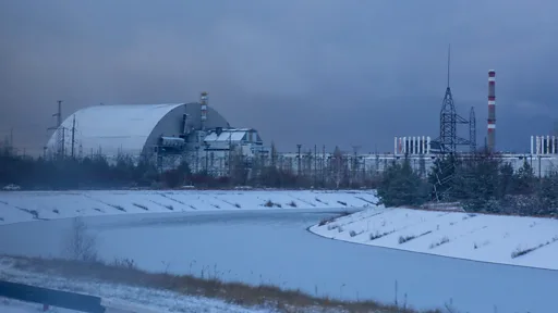 Dev çelik kalkan güneşin altında parıldıyor. Bu çelik kalkan 4 nolu reaktörü tamamen kaplamış durumda. Kazanın yaşandığı reaktörün üzerine 2016'da yerleştirilmişti.