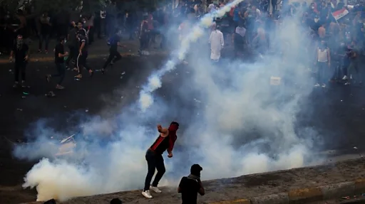 Başkent Bağdat'ta güvenlik güçleri göstericileri dağıtmak için göz yaşartıcı gaz ve gerçek mermi kullandı.