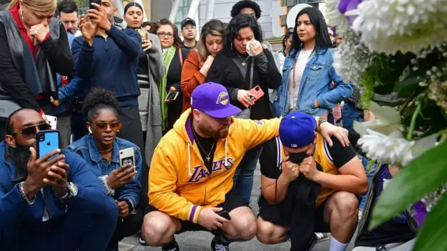Los Angeles Lakers basketbol takımının efsanevi oyuncusu Kobe Bryant'ın hayatını kaybetmesinin ardından, sevenleri Los Angeles'ta efsaneleştiği spor merkezi Staples Center'ın önüne koştu.