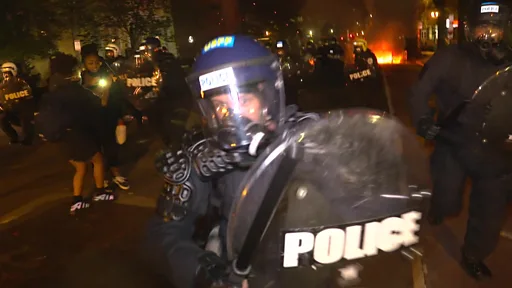 Washington DC'de, Beyaz Saray yakınlarında bir polis memuru, zırhıyla BBC kameramanına saldırıp itti.