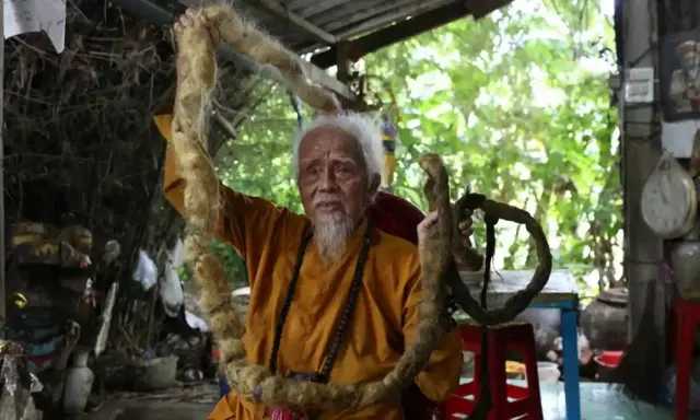 92 yaşındaki Vietnamlı Nguyen Van Chien 80 yıldır saçlarına dokunmadığı için saç boyu beş metreye ulaşmış.