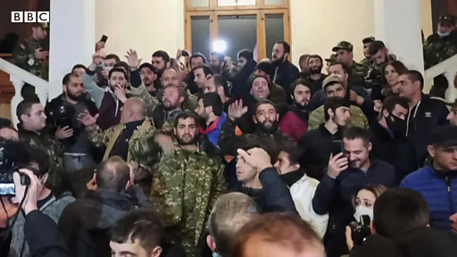 Erivan'da Parlamento binasına giren ve genel kurula giren protestocular, milletvekillerinin oturdukları koltukları fırlattı ve "İstifa edin" sloganları attı.