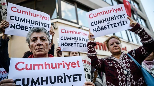 Cumhuriyet Gazetesi'nin, Genel Yayın Yönetmeni Murat Sabuncu'nun da aralarında bulunduğu, 18 yönetici ve yazarı hakkında gözaltı ve arama kararı çıkarıldı. Gazetenin İstanbul'daki merkezi ve Ankara'daki bürosu önünde operasyon protesto edildi.