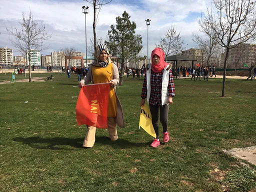 Aynur Altan, "Bu seneki Newroz çok önemli, geçen sene öz yönetim direnişlerinden dolayı anlamı çok büyüktü, bu sene hem referandum hem Rojava var, belirleyici olacak. İnsanlar baskıya rağmen geliyor" diyor.
