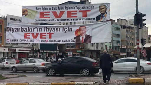 "Buna karşın şehrin her tarafında AK Parti bayrakları asılı. Hâlâ cumhurbaşkanının afişleri asılı. Polis kaldırmalarını rica etmiş ama bizi uyarmadan bayraklarımızı elleriyle indiriyorlar. Devletin bağımsız ve tarafsız olması gerekirken Emniyet, Kaymakamlık, Valilik gibi kurumlar tamamen taraf gibi davranıyorlar. Evet için çalışıp Hayır'a karşı da çalışma yürütüyorlar."