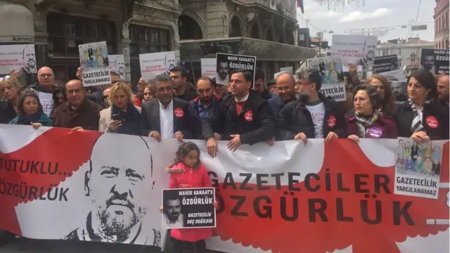 Bir grup gazetecinin çağrısı üzerine Pazar günü İstanbul İstiklal Caddesi'nde tutuklu gazetecilerin serbest bırakılması talebiyle bir yürüyüş düzenlendi.