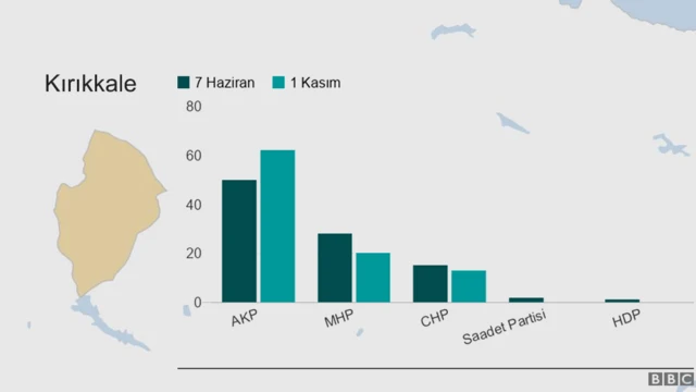 7 Haziran'da şehirdeki seçimler AKP: 2 - MHP: 1 şeklinde bitmiş, 1 Kasım'da da yüzlerle ifade edilen bir oyla AKP, MHP'ye kaptırdığı vekili geri almıştı. Kırıkkale, "MHP'nin kalesi" olarak adlandırılan bir il. Ancak seçimlerde durum hiç de öyle değil.