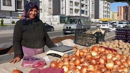 Her tezgahta ayrı bir hareketlilik var. Tezgahında patates ve soğan satan Selime Tamir'in yanına gidiyorum. Kameraya konuşmak istemiyor ama röportaj verebileceğini söylüyor.