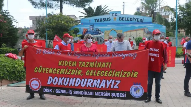 DİSK Başkan Kurulu bildirisinde, "Bir yandan Tamamlayıcı Emeklilik Sistemi adı altında kıdem tazminatımız fona aktarılarak, bir yandan da 25 yaş altı ve 50 yaş üstü çalışanlar başta olmak üzere esnek-güvencesiz çalıştırmayı yaygınlaştırarak kıdem tazminatı hakkı yok edilmek istenmektedir" denildi.