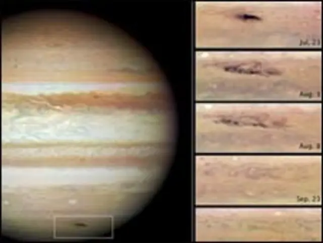 Hubble teleskobunun sağladığı fotoğraflar, göktaşının çarpması ardından Jüpiter'in üzerinde oluşan tahribatını gösteriyor.